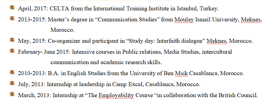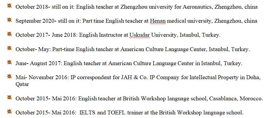 國(guó)籍: 摩洛哥 求職意向: 教師