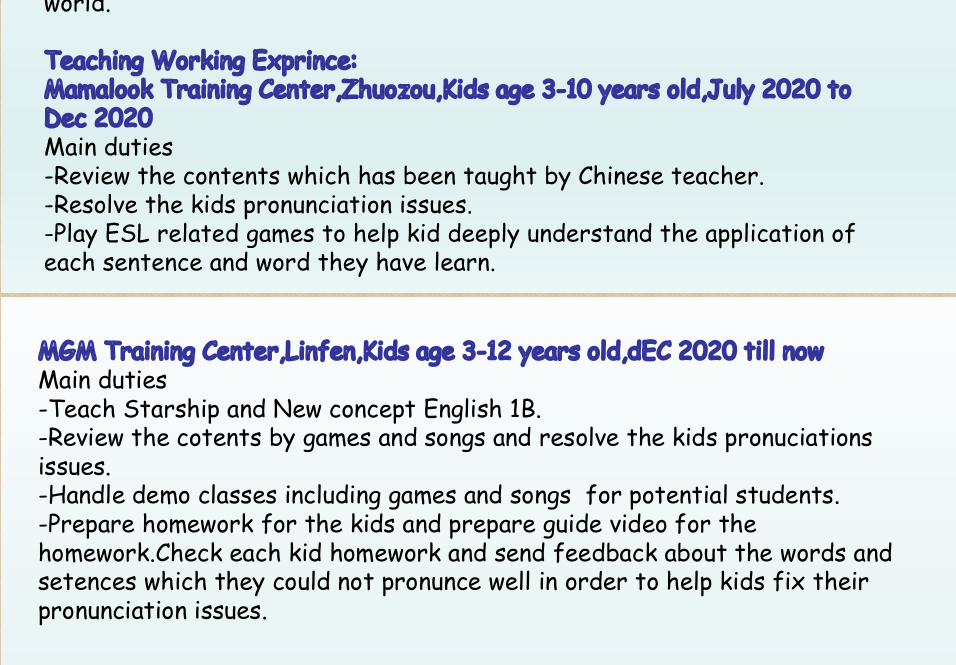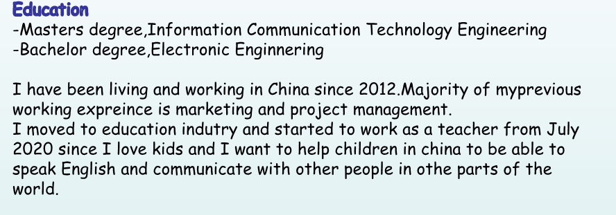 口音好, 易相處, 有教學經(jīng)驗, 喜歡北方城市, 最好有雪的地方 |