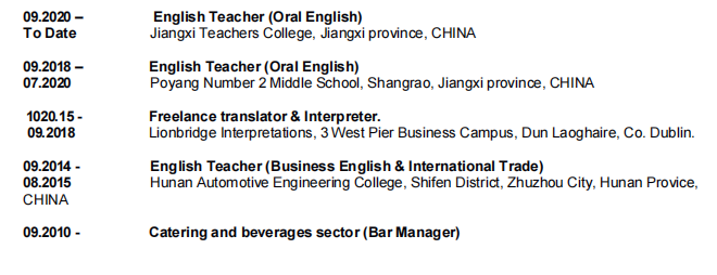 國籍: 其他 求職意向: 教師