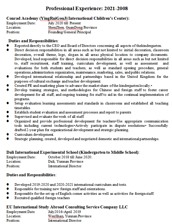 國籍: 其他 求職意向: 教師