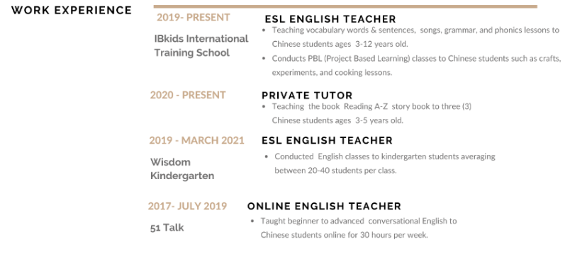 國(guó)籍: 澳大利亞 求職意向: 教師