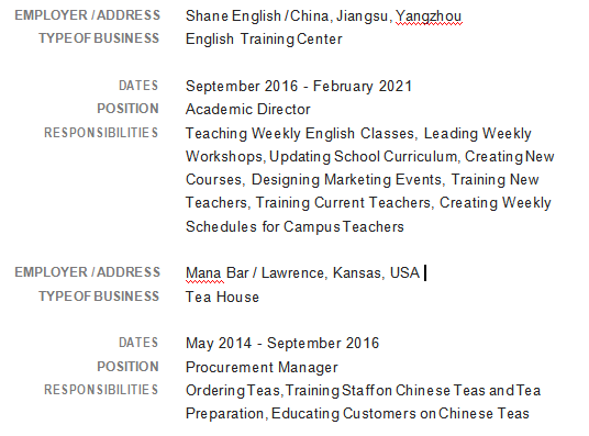 國(guó)籍: 澳大利亞 求職意向: 教師