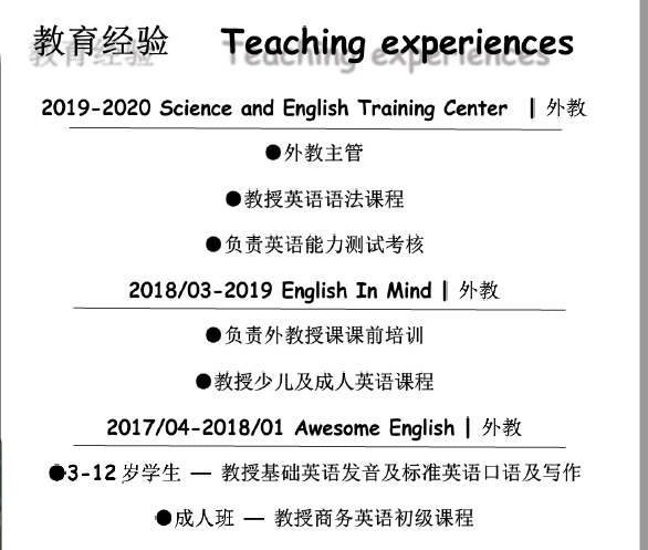 國籍: 其他 求職意向: 教師