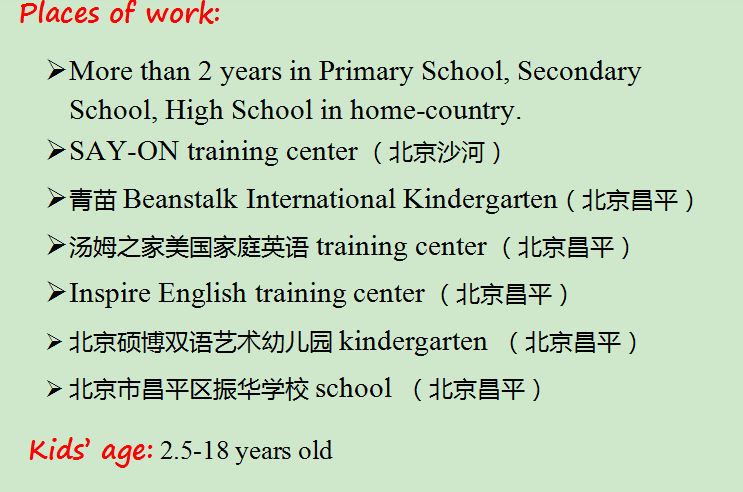 Mary+土耳其+本科+自理工簽+幼兒園或兼職+目前在北京昌平,盡快到~4年教學(xué)經(jīng)驗(幼兒園到小學(xué) |