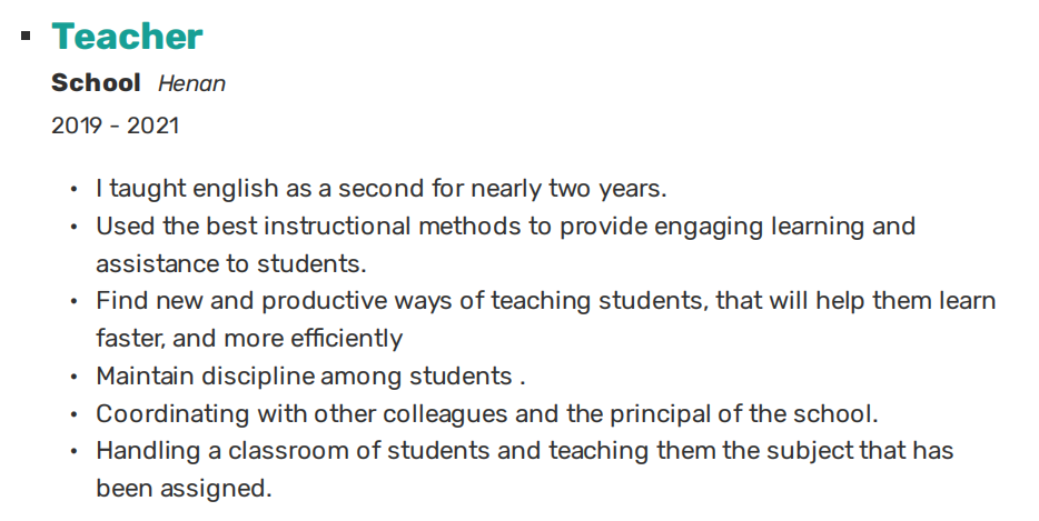 國(guó)籍: 摩洛哥 求職意向: 教師