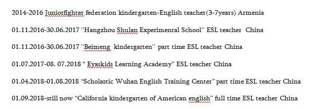 國籍: 其他 求職意向: 教師