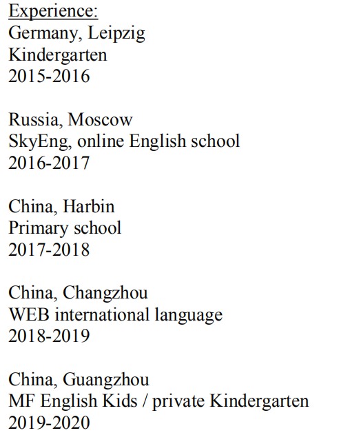 外教口音不錯(cuò) 有比較豐富的教學(xué)經(jīng)驗(yàn) 有tefl 本科語言類專業(yè) 現(xiàn)在廣州 求職廣州 |