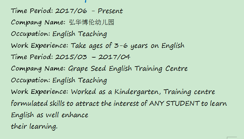 國(guó)籍: 澳大利亞 求職意向: 教師