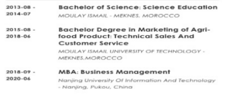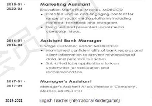 國(guó)籍: 摩洛哥 求職意向: 教師