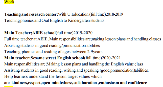 國(guó)籍: 孟加拉 求職意向: 教師