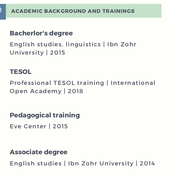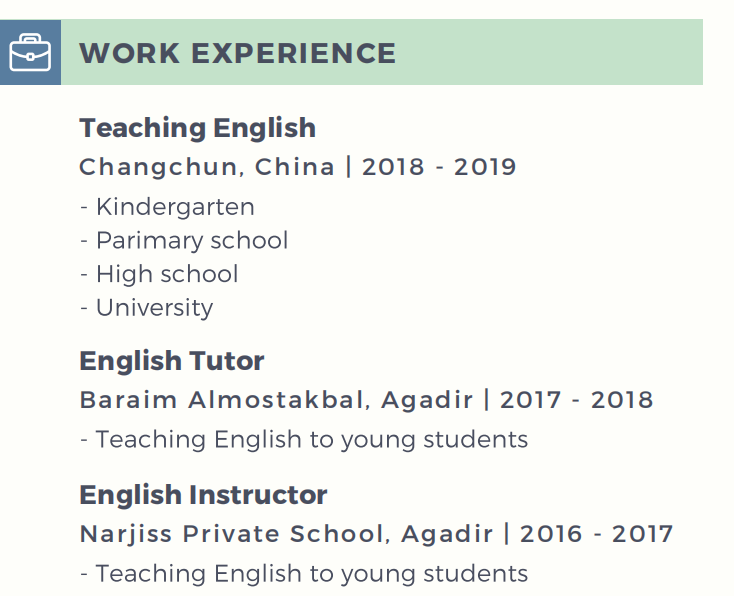 國(guó)籍: 摩洛哥 求職意向: 教師