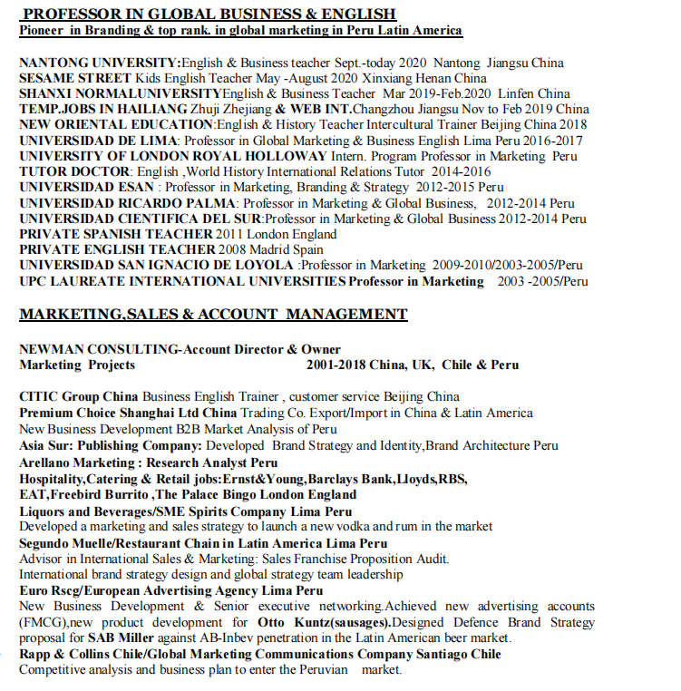 國(guó)籍: 孟加拉 求職意向: 教師