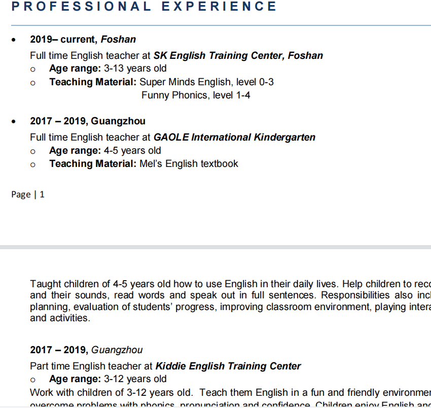 國籍: 澳大利亞 求職意向: 教師