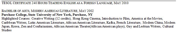國籍: 其他 求職意向: 教師