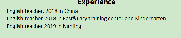 自我介紹,介紹國籍,24,目前在常熟,即將畢業(yè)于常熟理工大學。教學經(jīng)歷,學生年齡,教學優(yōu)勢,喜歡孩子,也能說中文