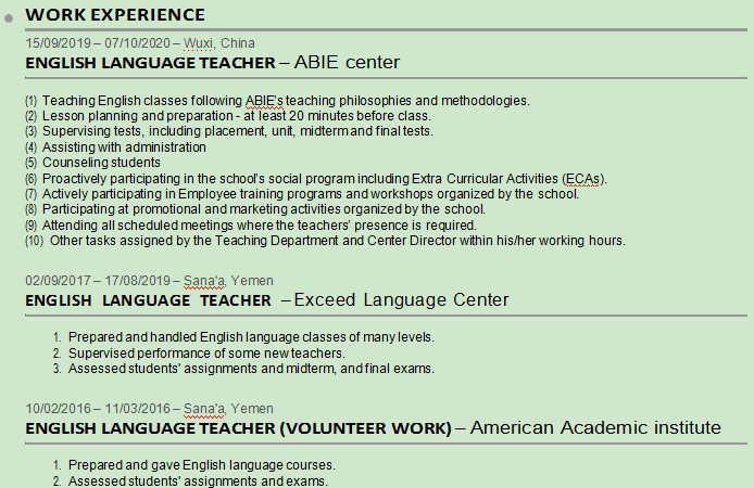 國(guó)籍: 摩洛哥 求職意向: 教師