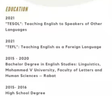 國(guó)籍: 摩洛哥 求職意向: 教師