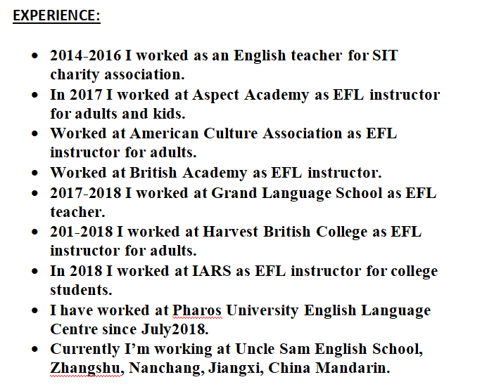 埃及 在宜春, 文教類簽證轉(zhuǎn)聘在8月,經(jīng)驗(yàn)豐富+celta , 求職南昌公立私立幼兒園職位。 |