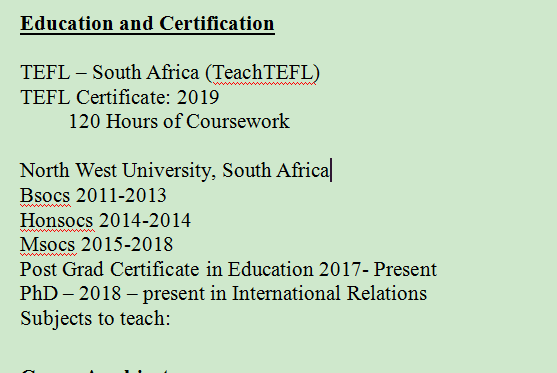 國(guó)籍: 澳大利亞 求職意向: 教師