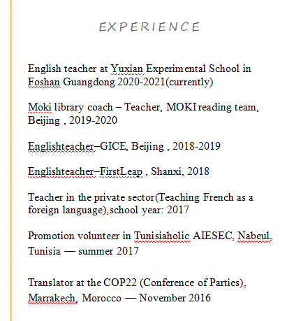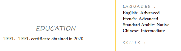 國(guó)籍: 摩洛哥 求職意向: 教師