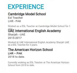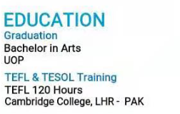 國籍: 孟加拉 求職意向: 教師