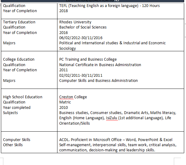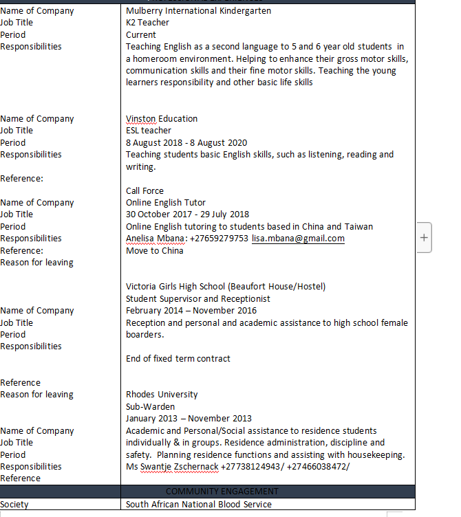 南非 社會科學本科, 有豐富經(jīng)驗 在幼兒園,培訓班, 大學 高中 文教類轉(zhuǎn)聘在7月 薪資協(xié)商 |