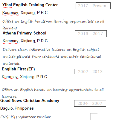 國(guó)籍: 孟加拉 求職意向: 教師