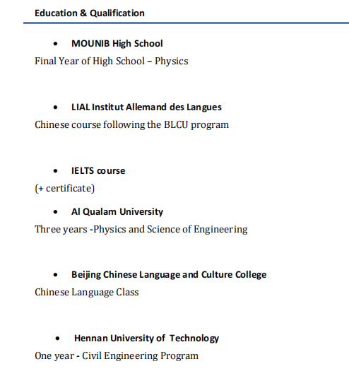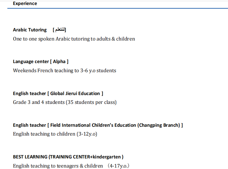 國(guó)籍: 摩洛哥 求職意向: 教師
