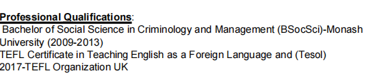 國(guó)籍: 澳大利亞 求職意向: 教師