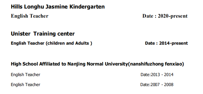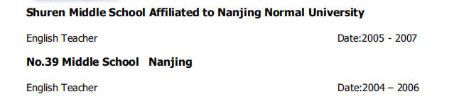 碩士學(xué)歷,公立學(xué)校教學(xué)經(jīng)驗豐富,在南京,求職城市不限制,15k |
