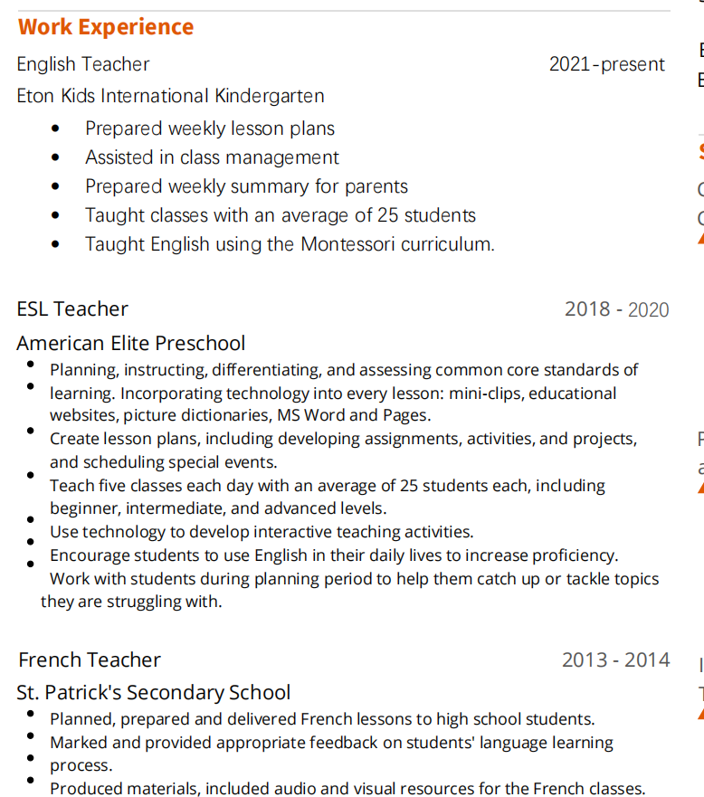 國籍: 其他 求職意向: 教師