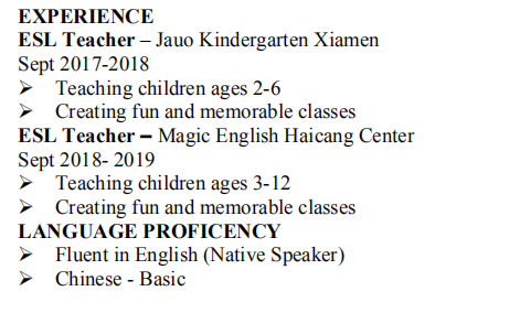 學歷: 本科 期望薪資: 8000-11000(Yuan/M)