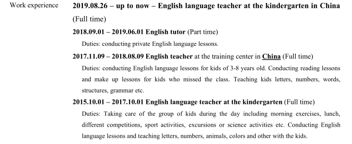 國籍: 其他 求職意向: 教師