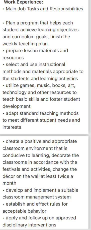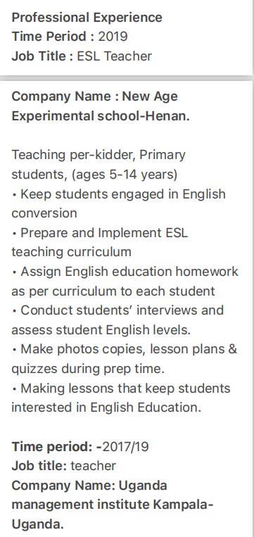國籍: 其他 求職意向: 教師