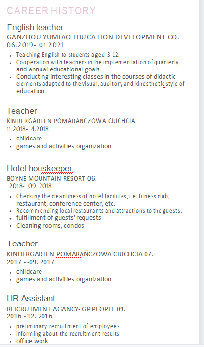 國籍: 其他 求職意向: 教師