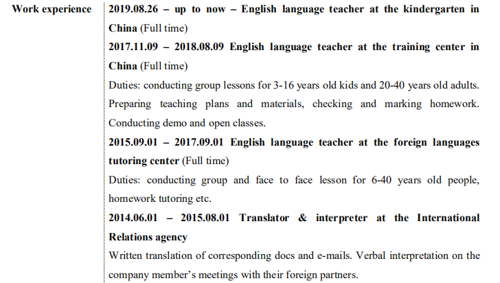 國(guó)籍: 其他 求職意向: 教師