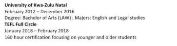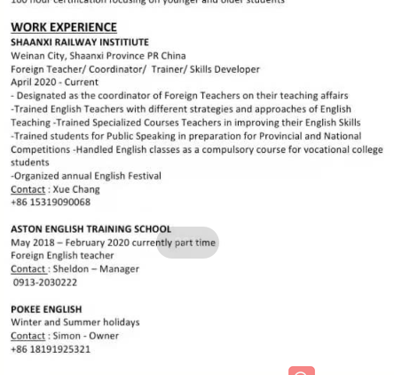 國籍: 其他 求職意向: 教師