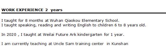 外教口音不錯 人也非常活潑 有兩年的教學(xué)經(jīng)驗 傾向于江西職位 |