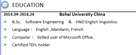 學歷: 本科 期望薪資: 8000-11000(Yuan/M)