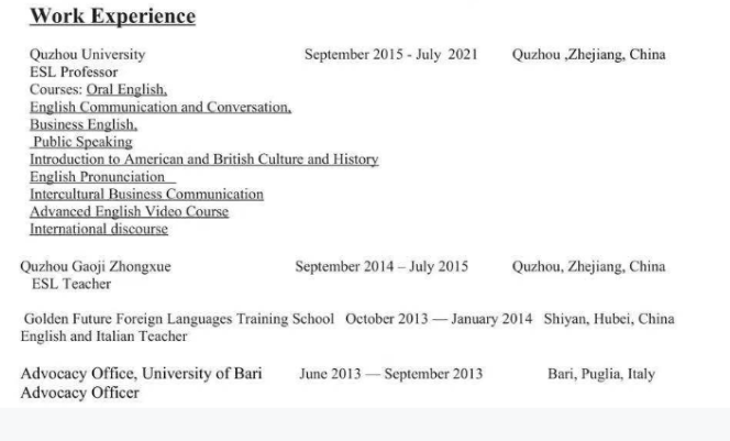 國(guó)籍: 孟加拉 求職意向: 教師