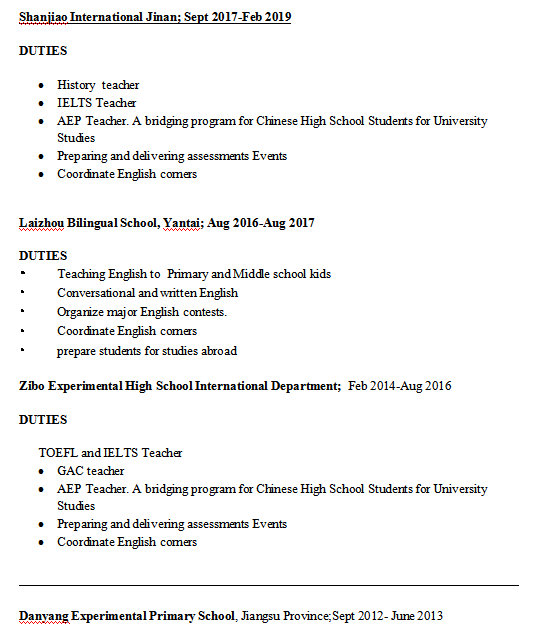 國籍: 其他 求職意向: 教師