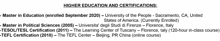 國(guó)籍: 摩洛哥 求職意向: 教師