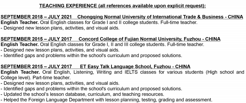 國(guó)籍: 澳大利亞 求職意向: 教師