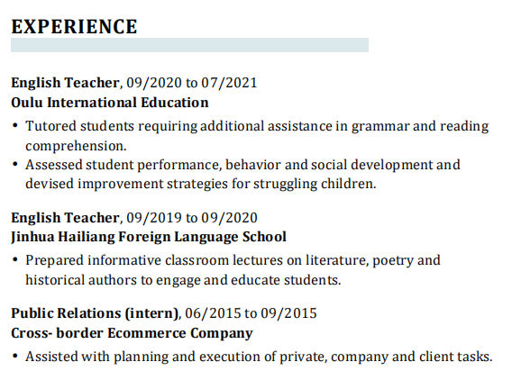 國(guó)籍: 澳大利亞       求職意向: 教師