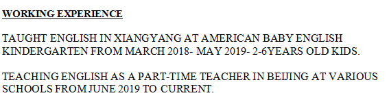 外教有不錯(cuò)的教學(xué)經(jīng)驗(yàn) 非常活潑 求職天津 本科 |
