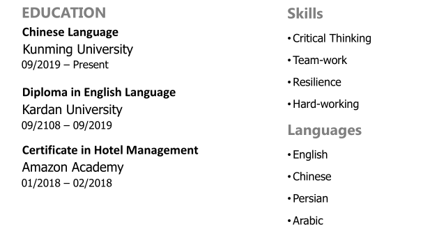 國(guó)籍: 摩洛哥 求職意向: 教師