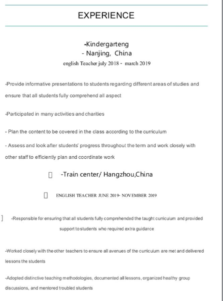 哈薩克斯坦,目前在上海,學(xué)生簽--11月--可延長(zhǎng),求職上海職位,薪資18k左右,可盡快到崗,發(fā)音贊,3年教學(xué)經(jīng)驗(yàn) |
