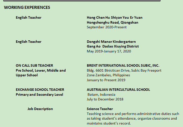 Tammy+菲律賓女+本科(生物學(xué))+文教類工簽轉(zhuǎn)聘(2022.06.08)+求職地點(diǎn)可協(xié)商+目前在???,8月底結(jié)束合同到崗(至少14k) |