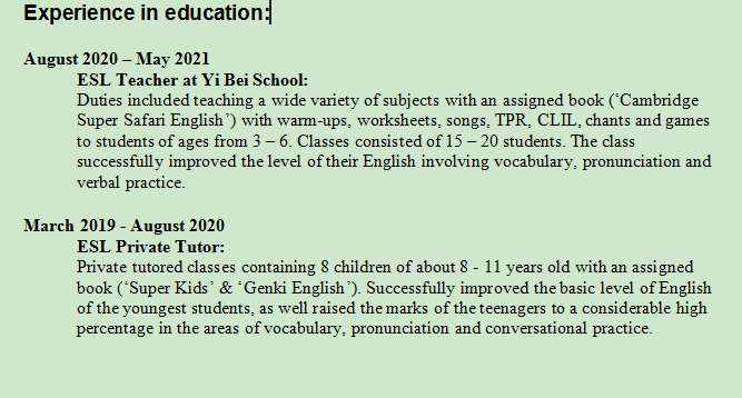 國(guó)籍: 澳大利亞 求職意向: 教師