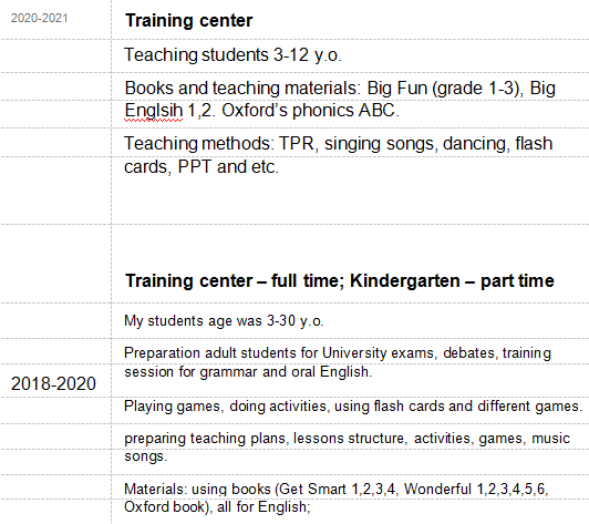 國籍: 亞美尼亞 求職意向: 教師